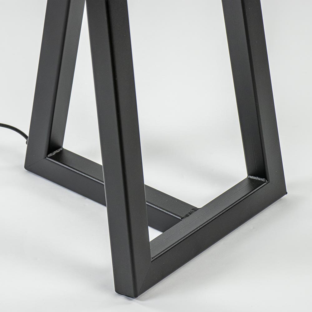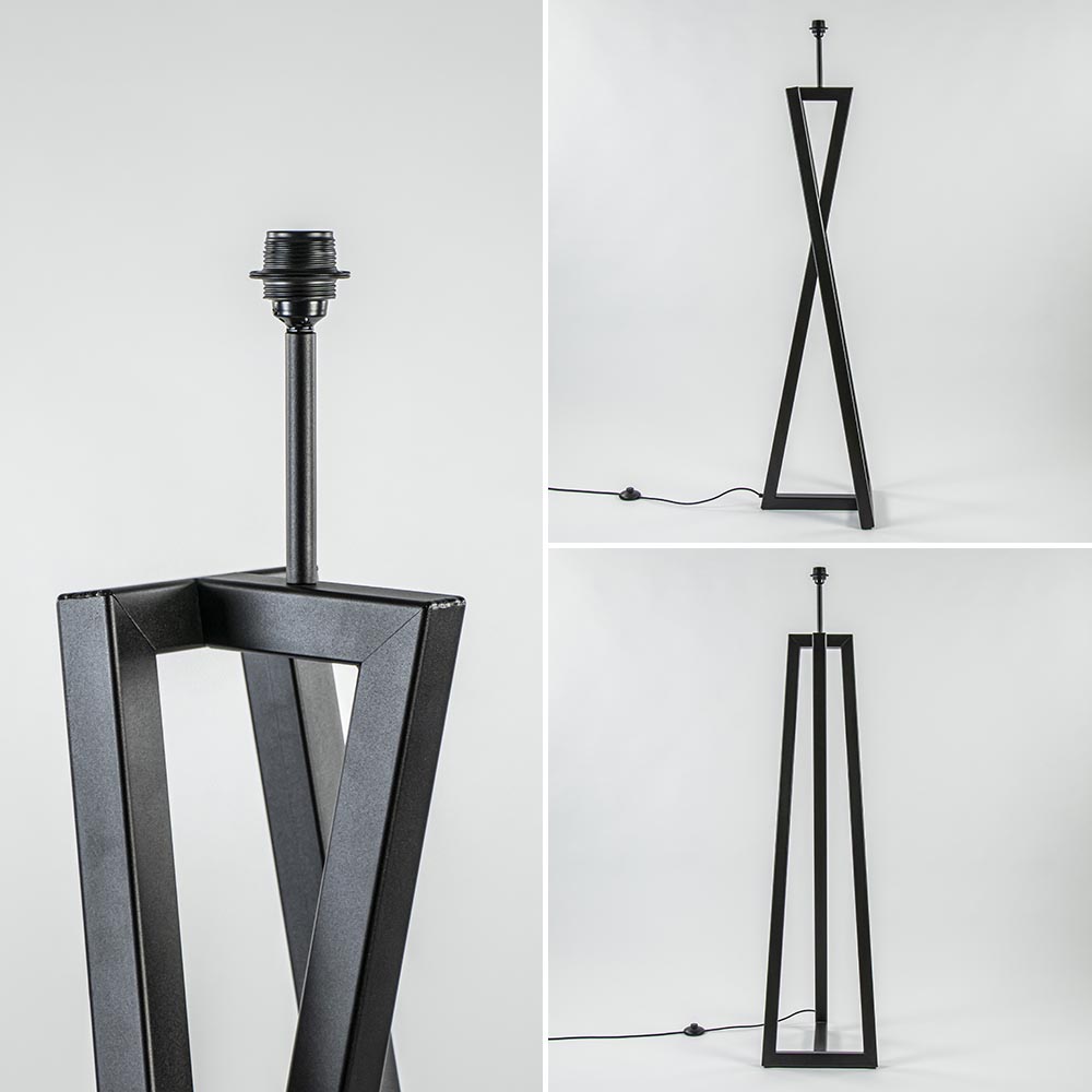 Een stoere robuuste vloerlamp met een hoog design gehalte. Deze vloerlamp is volledig vervaardigd van metaal en door echte ambacht gemaakt op Nederlandse bodem. Het metalen frame heeft een strakke afwerking en is voorzien van een mat zwarte finish. De staande lamp is voorzien van een zwart snoer met een lengte van 180 cm, de schakelaar bevindt zich op 45 cm in het snoer. De design lamp wordt geleverd zonder kap, zo kunt u de lamp zelf samenstellen zoals u wenst.