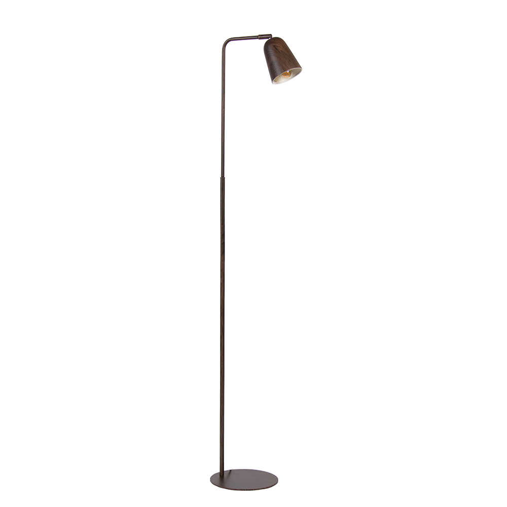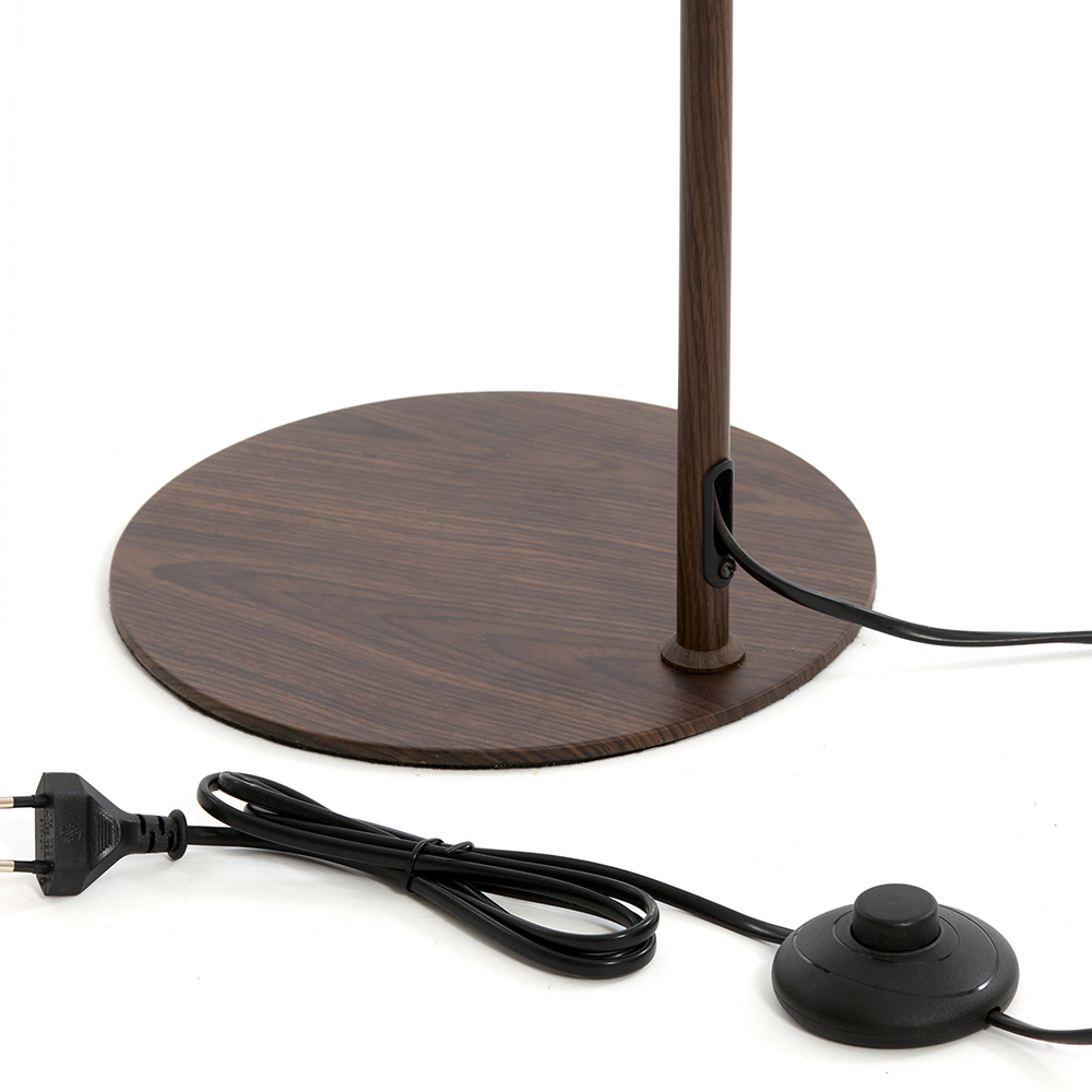 Details: – Afmetingen: 147x25x23 cm – Kap: ø10,5 x 14 cm – Voet: ø23 – Snoer lengte: 180 cm – Schakelaar: 70 cm – Materiaal: metaal – Kleur: hout & bruin – Fitting: E27 (excl.) – Gewicht: 3,5kg – Kap kante- & draaibaar