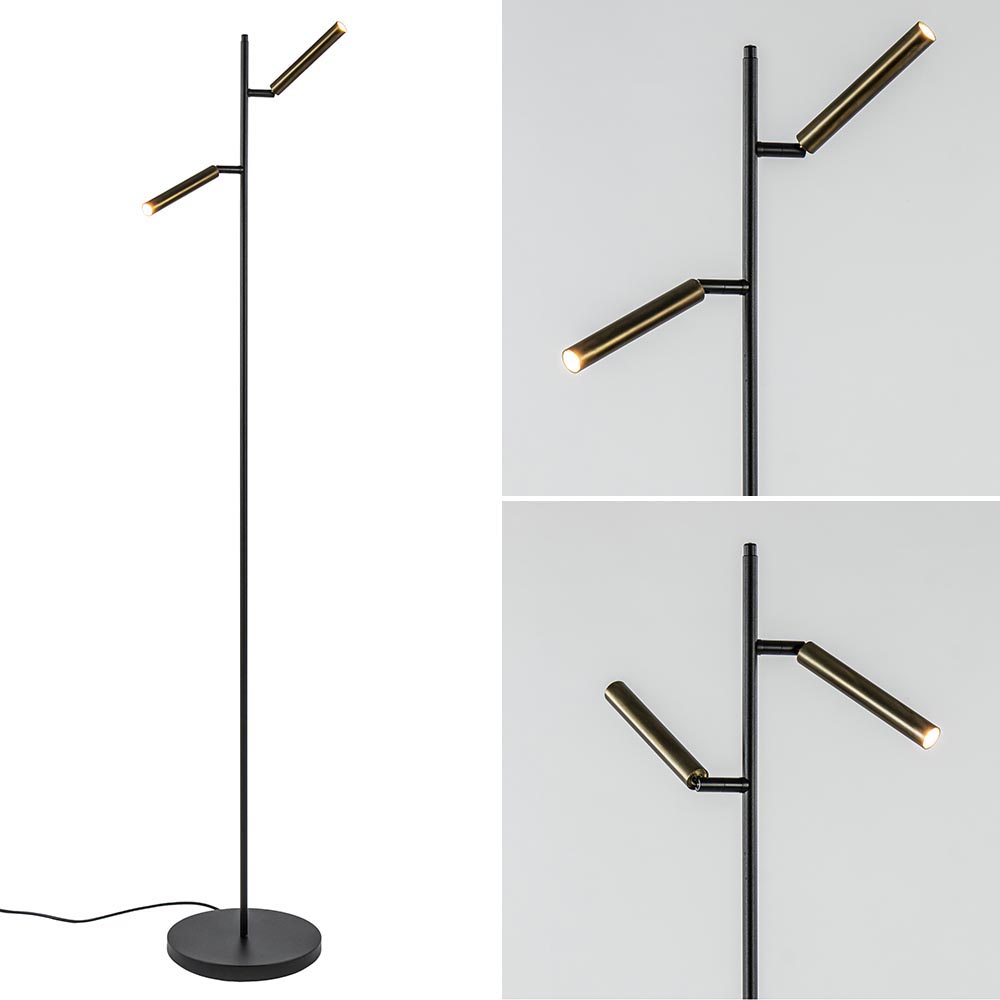 Een prachtig minimalistisch design met een mooie afwerking. De vloerlamp is gemaakt van metaal en uitgevoerd in het zwart met antiek bronzen kappen. De kappen zijn voorzien van LED verlichting welke middels de dimmer op het armatuur kan worden gedimt. Door de dim to warm functie dimt u tussen de 2200 en 2700 Kelvin. Zo heeft u altijd warm witte verlichting. De cilinder vormige kappen zijn verstelbaar door deze te draaien en of te kantelen. Ideaal om zo een donkere hoek uit te lichten of de lamp te gebruiken als leeslamp. De design vloerlamp zwart met antiek brons heeft een snoer van 180 cm.