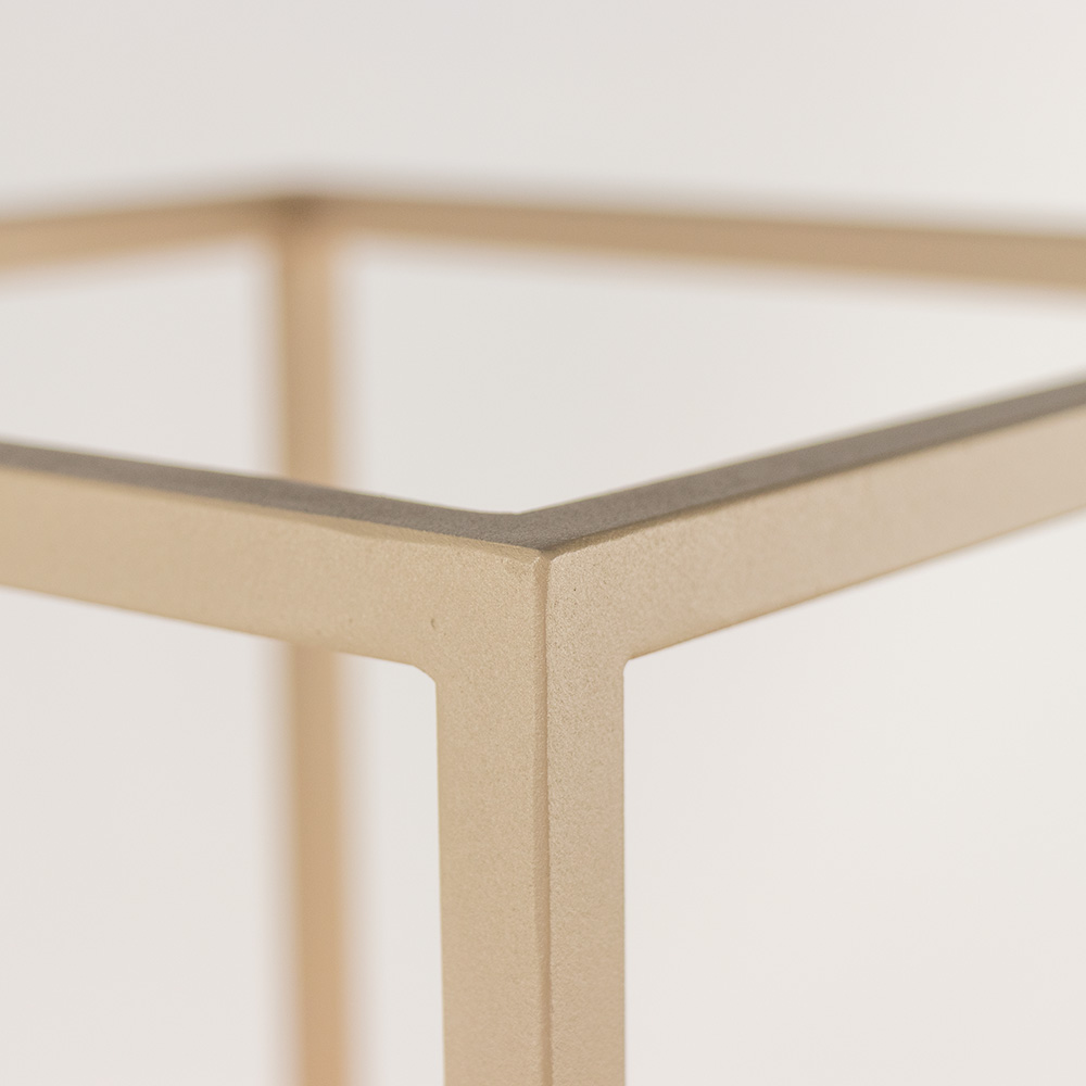 Deze moderne vloerlamp heeft een minimalistisch ontwerp met een strak metalen frame in een zachte beige tint. Het open, geometrische ontwerp met vier lichtbronnen in een verticaal arrangement biedt zowel esthetisch plezier als praktische verlichting. Perfect voor een industrieel of modern interieur, voegt deze lamp niet alleen licht toe aan je ruimte, maar vormt het ook een opvallend decoratief element. Een ideale keuze voor zowel woonkamers als kantoren, waar stijl en functionaliteit samenkomen.