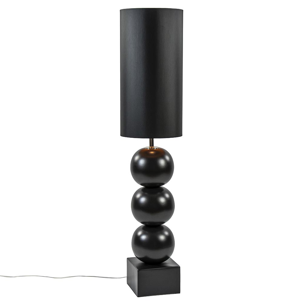 Een elegante toevoeging voor een strak klassiek of hotel chic interieur. De lampvoet is volledig gemaakt van keramiek en is uitgevoerd in het mat zwart. Dit geeft de staande lamp een luxe uitstraling die compleet wordt gemaakt door de grote ronde kap in het zwart/goud. Deze wordt ondersteund door een fitting met kogelgewricht zodat u de kap gemakkelijk recht kunt zetten. De vloerlamp met bollen is voorzien van een transparant snoer met een lengte van 200 cm. De schakelaar bevindt zich op 80 cm van de voet. De chique vloerlamp met kap wordt exclusief lichtbron geleverd.