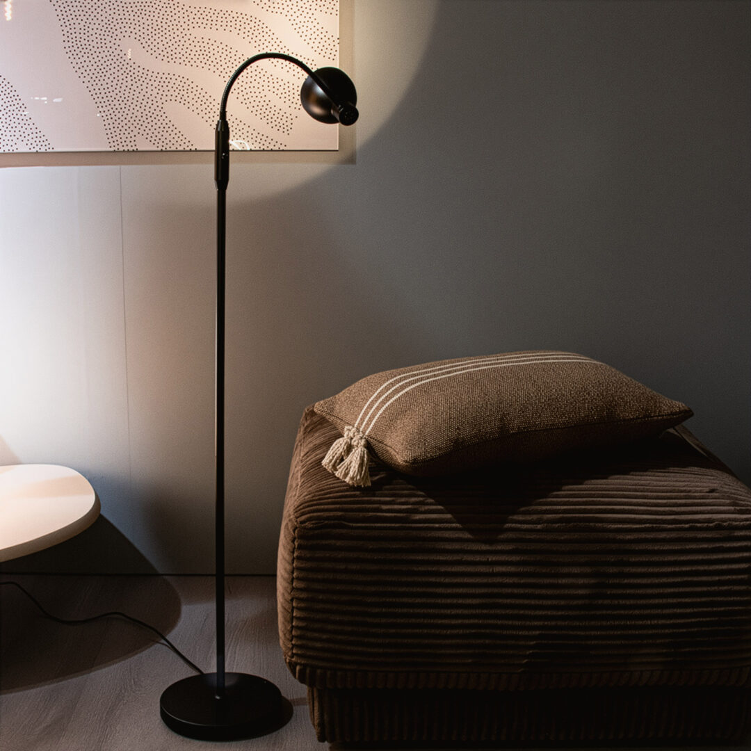 Een praktische en minimalistische vloerlamp voor functionele verlichting! Vloerlamp Katerina is de ideale leeslamp dankzij het verstelbare armatuur en de gerichte lichtbundel. Het slanke, minimalistische ontwerp in matzwart past perfect in moderne, industriële en Scandinavische interieurs. Dankzij de flexibele arm kun je het licht eenvoudig richten, ideaal naast een bank, fauteuil of bureau.