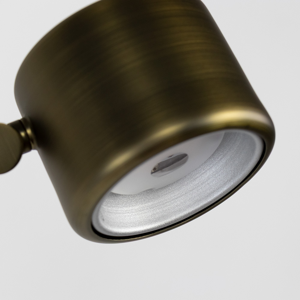 Details: – Afmetingen: – Voet: Ø25×4,5 cm – Kap: Ø9,5 x 8 cm – Kleur: Brons – Materiaal: metaal – Geïntergreerd – Snoer: 210 cm – Schakelaar op armatuur – Hoogte min 104 max 179 – Dimbaar – Kleur temperatuur in te stellen