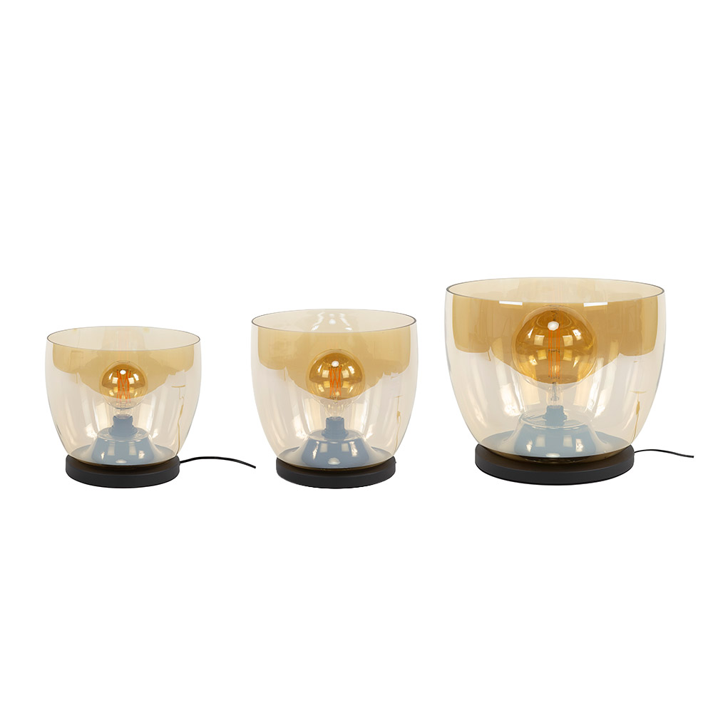 • Warme, sfeervolle lichtspreiding door amberglas • Tijdloos ontwerp past in modern én warm interieur • L & XL inzetbaar als tafel- en vloerlamp • XXL als luxe vloersculptuur • Geschikt voor decoratieve filament lichtbronnen