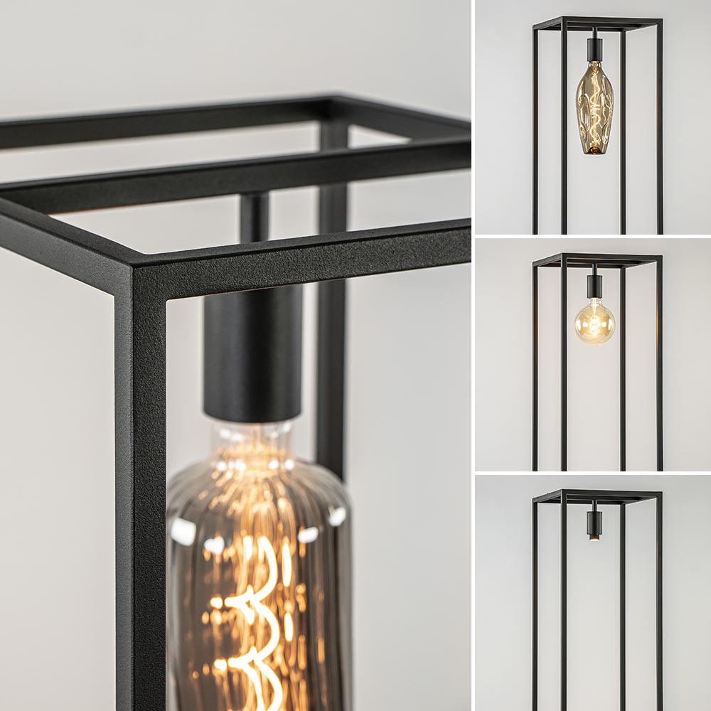 – afm: 33x30x150 cm – metaal, mat zwart – hout – zwart snoer: 160 cm – exclusief lichtbron (E27)