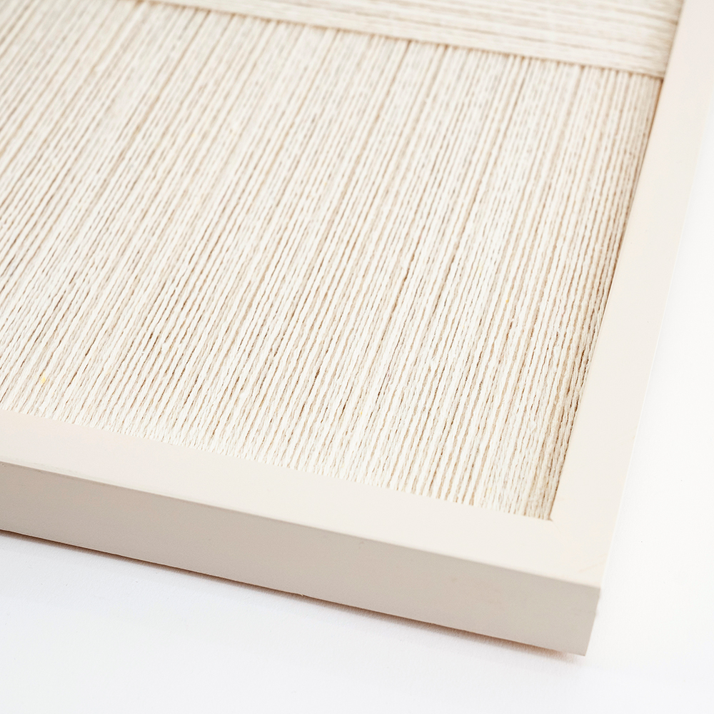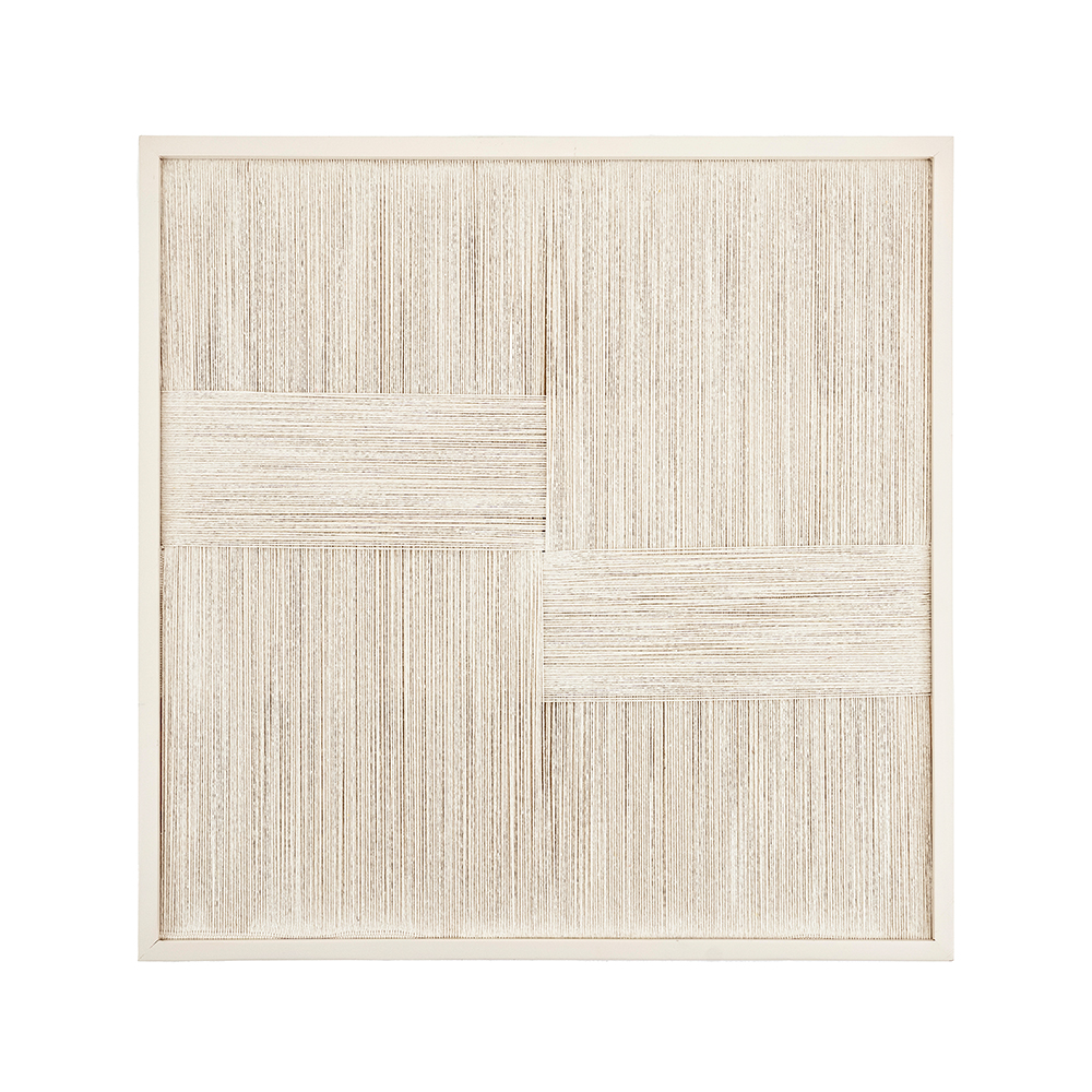 Kenmerken • Afmetingen: 60 × 60 × 3 cm • Kleur: Off-white / beige • Materiaal: Houten frame met polyester draden • Gewicht: ± 1 kg • Montage: Inclusief discreet ophangsysteem • Onderhoud: Afstoffen met een droge doek • Stijl: Scandinavisch • Modern • Landelijk