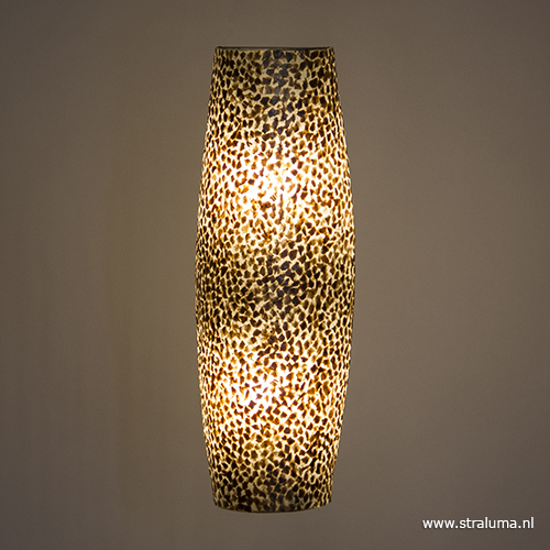 – lamp heeft een hoogte van 55 cm en een breedte van 20 cm – gouden capiz schelpen – wit snoer met schakelaar – exclusief lichtbronnen (E14)