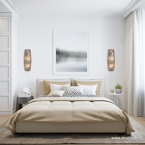 Een beetje strand en zee in huis halen? Dat kan met deze sfeervolle wandlamp. De lamp is gemaakt van gebroken stukjes capiz schelpen en geeft een leuk effect. Vooral wanneer de lamp wordt aangezet zorgen de schelpen voor een mooie, warme en gezellige sfeer. De schelpen wandlamp is op te hangen aan een metalen frame en heeft een wit snoer met schakelaar. Omdat de lamp niet ver uitsteekt van de muur is deze perfect geschikt voor bijvoorbeeld een hal of leuk naast het bed.