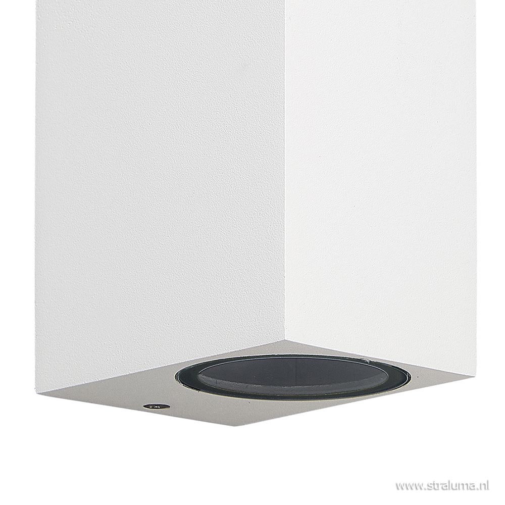 – lamp heeft een totale afmeting van 9,5x7x15 cm – aluminium, wit – exclusief lichtbron (2x GU10) – IP54 goedgekeurd – weerbestendig van -10° tot +45°C – gewicht: 0,52 kg