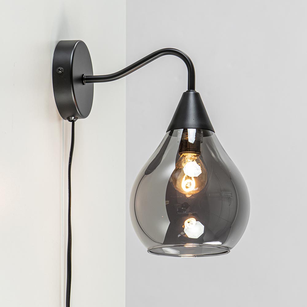 Een sfeervolle wandlamp voor net even wat extra sfeer in huis. De wandlamp past mooi in een hal, woonkamer of boven het nachtkastje. De wandlamp heeft een moderne luxe uitstraling door het spiegelende titanium glas. Het donkere glas sluit mooi aan op de fitting doordat het glas zelf is voorzien van schroefdraad. De zwart metalen bevestiging is voorzien van een snoer van 145 cm, met een knipschakelaar op 90 cm. De chique wandlamp wordt geleverd zonder lichtbron (E14).