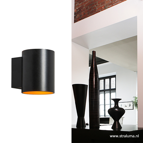 Homepagina / Lampen / Wandlampen / Wandlamp cilinder zwart/goud