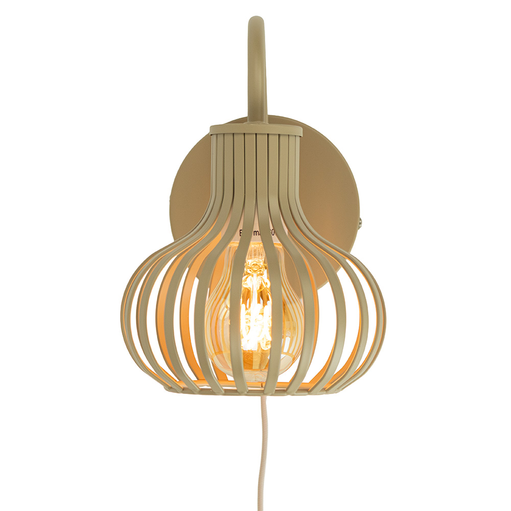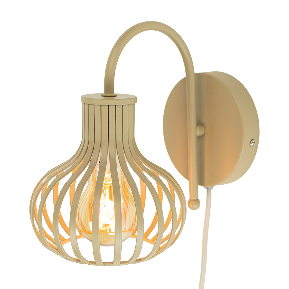Specificaties: • Afmetingen: 22 x 22 x 15 cm (hxbxd) • Wandbevestiging: Ø11,6 x 2,5 cm • Kap: Ø15 x 15 cm • Materiaal: Metaal • Kleur: Beige • Gewicht: 800 gram • Snoer met schakelaar: Ja • Fitting: 1x E27 (lichtbron niet inbegrepen)