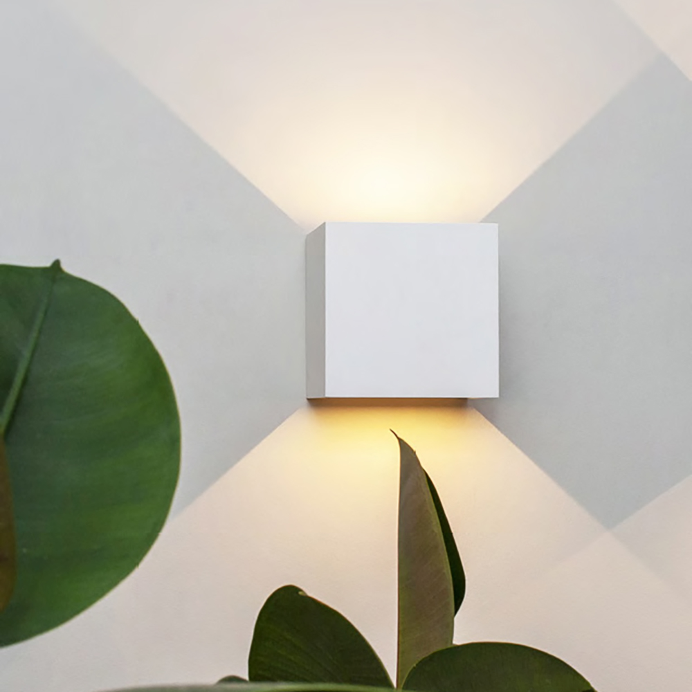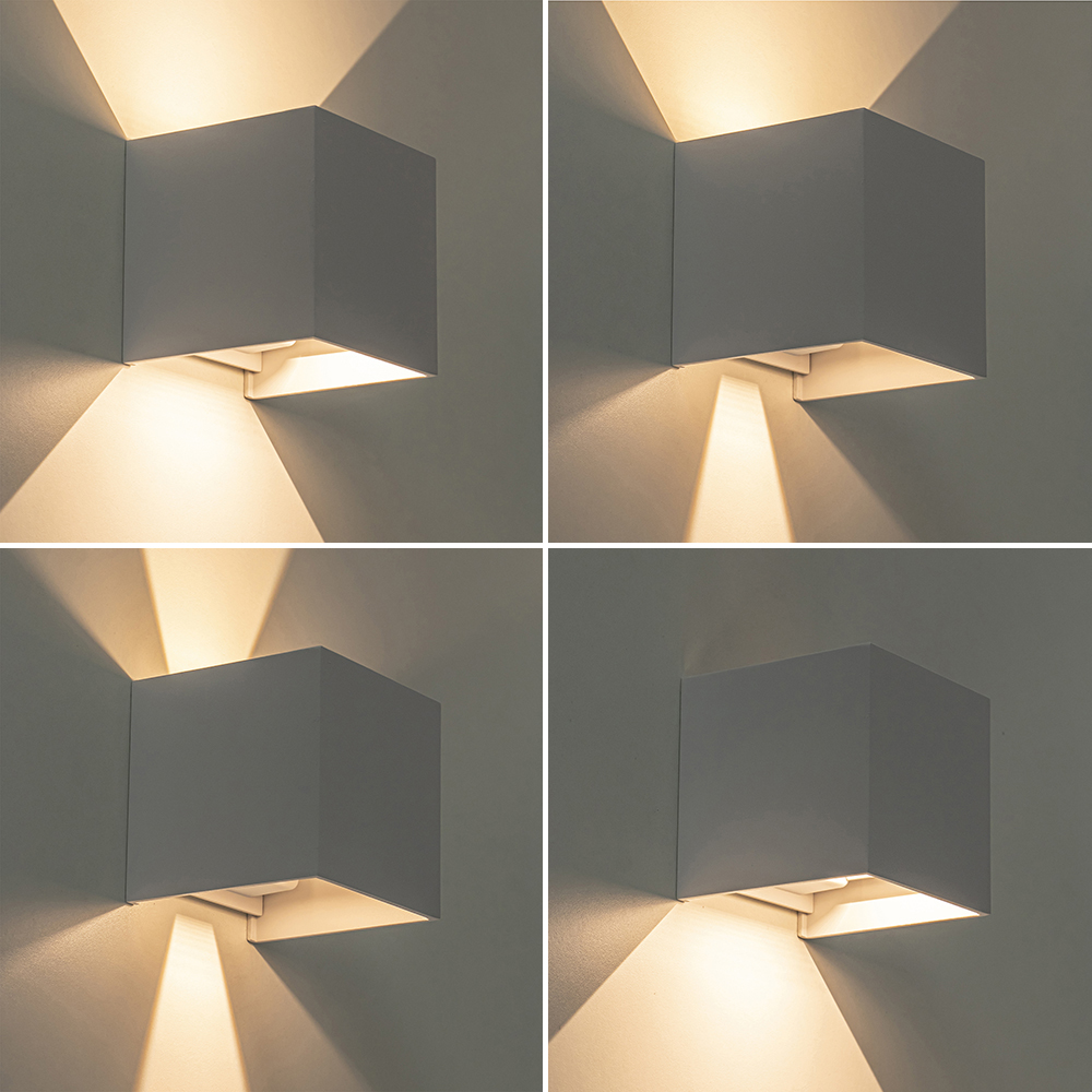 Een subtiele en sfeervolle toevoeging aan uw tuin. Deze kleine vierkante wandlamp valt overdags bijna niet op, maar ’s avonds daarentegen des te meer. De witte aluminium wandlamp creëert een sfeervol zandloper effect op de muur of schutting en geeft dankzij z’n lumen van 1100 flink wat licht. Aan de binnenzijde kunt u kiezen om het licht meer naar boven of onder te bundelen. Zo kunt u iedere wandspot los van elkaar instellen voor een speels effect door heel de tuin. De moderne buitenlamp is voorzien van geïntegreerd LED zodat deze energiezuinig is en is IP54 goedgekeurd. De moderne buitenlamp is dimbaar middels een externe dimmer (exclusief).