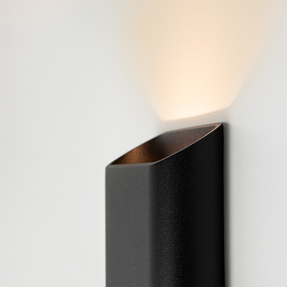 Mooi strak design wandlamp uitgevoerd in de kleur zwart. Een mooie sfeermaker voor in de hal, woonkamer of slaapkamer. De wandlamp is klein van stuk maar zorgt voor een groot effect in de ruimte. Deze bronze wandlamp werkt als een up- & downlighter, hij geeft zowel licht naar boven als naar beneden langs de muur doormiddel van geïntergreerd LED. De wandlamp is dimbaar middels een externe dimmer.