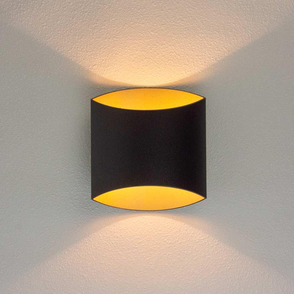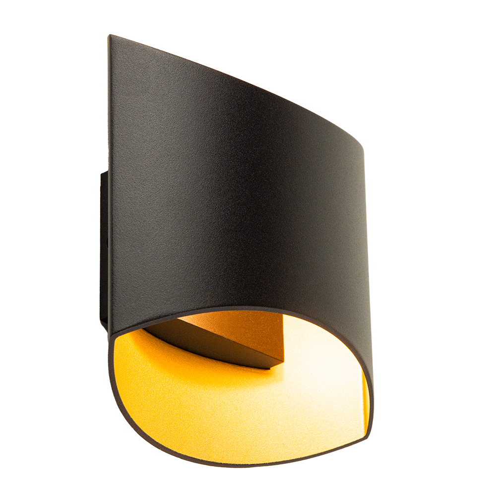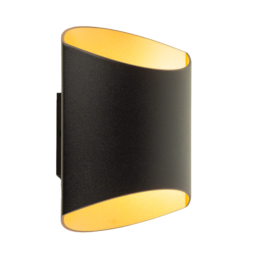 Deze stoere sierlijke wandlamp is een mooie toevoeging aan uw interieur. De wandlamp werkt zowel als een up en downlighter. Zo ontstaat er een mooie sfeervolle lichtverspreiding op de wand. De wandlamp is gemaakt van metaal en uitgevoerd in het mat zwart met een gouden binnenkant. Dit geeft deze zwarte wandlamp een trendy en luxe uitstraling. Deze wandlamp wordt zonder lichtbron geleverd. Hij is dimbaar met de juiste dimmer (exclusief).