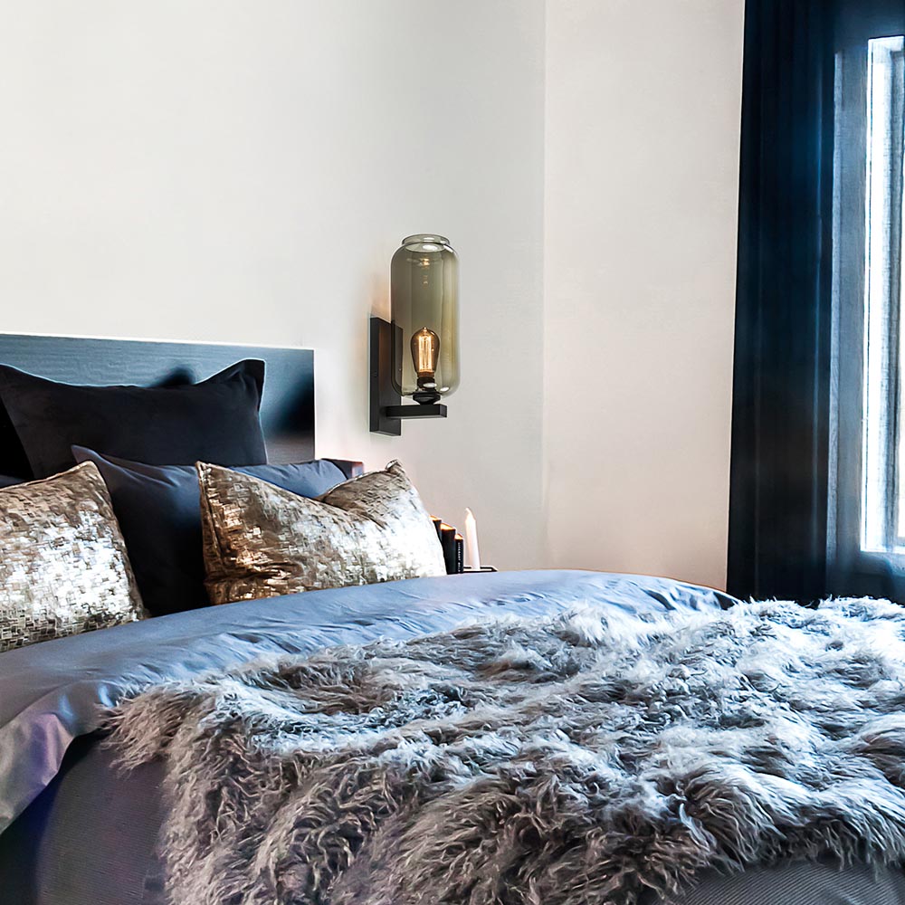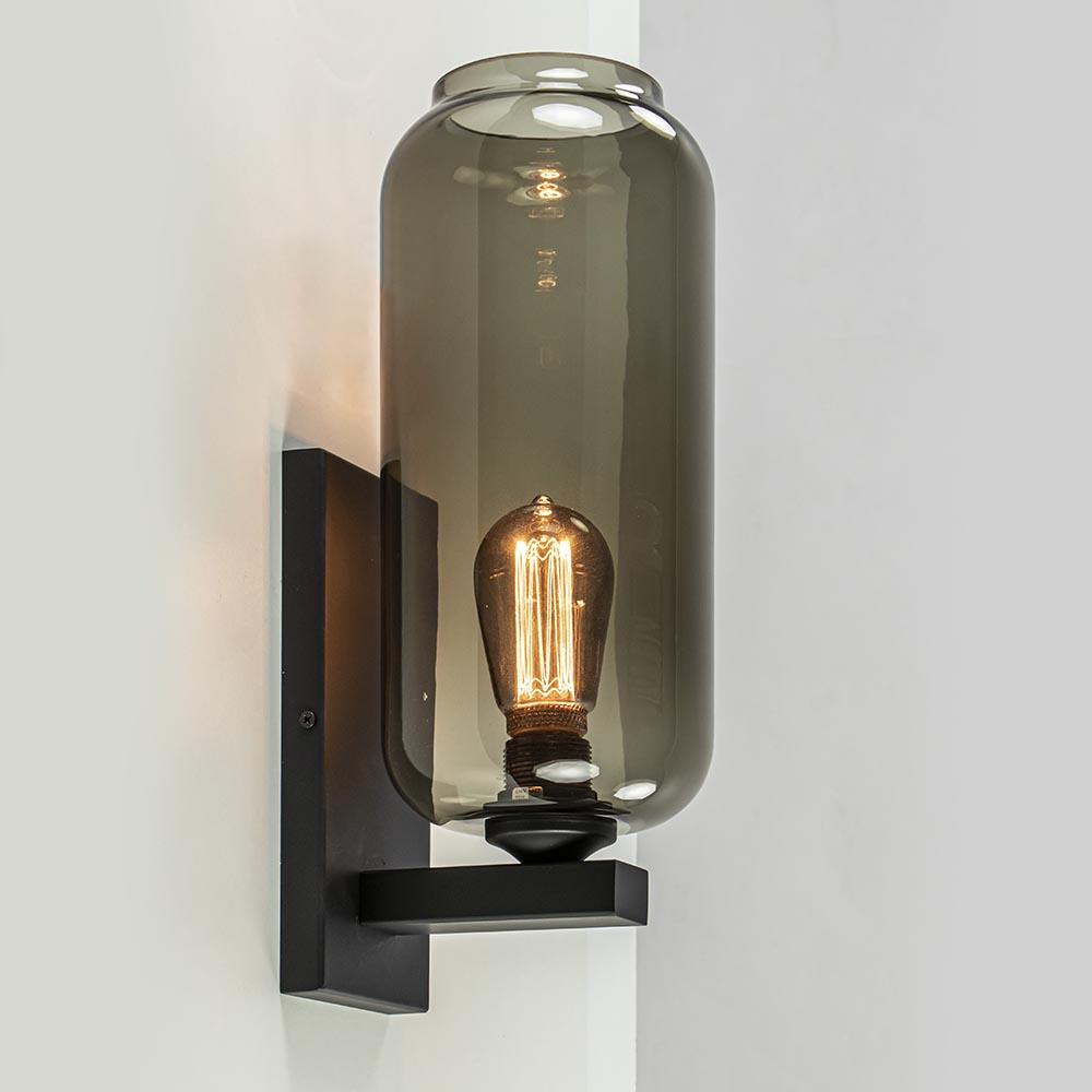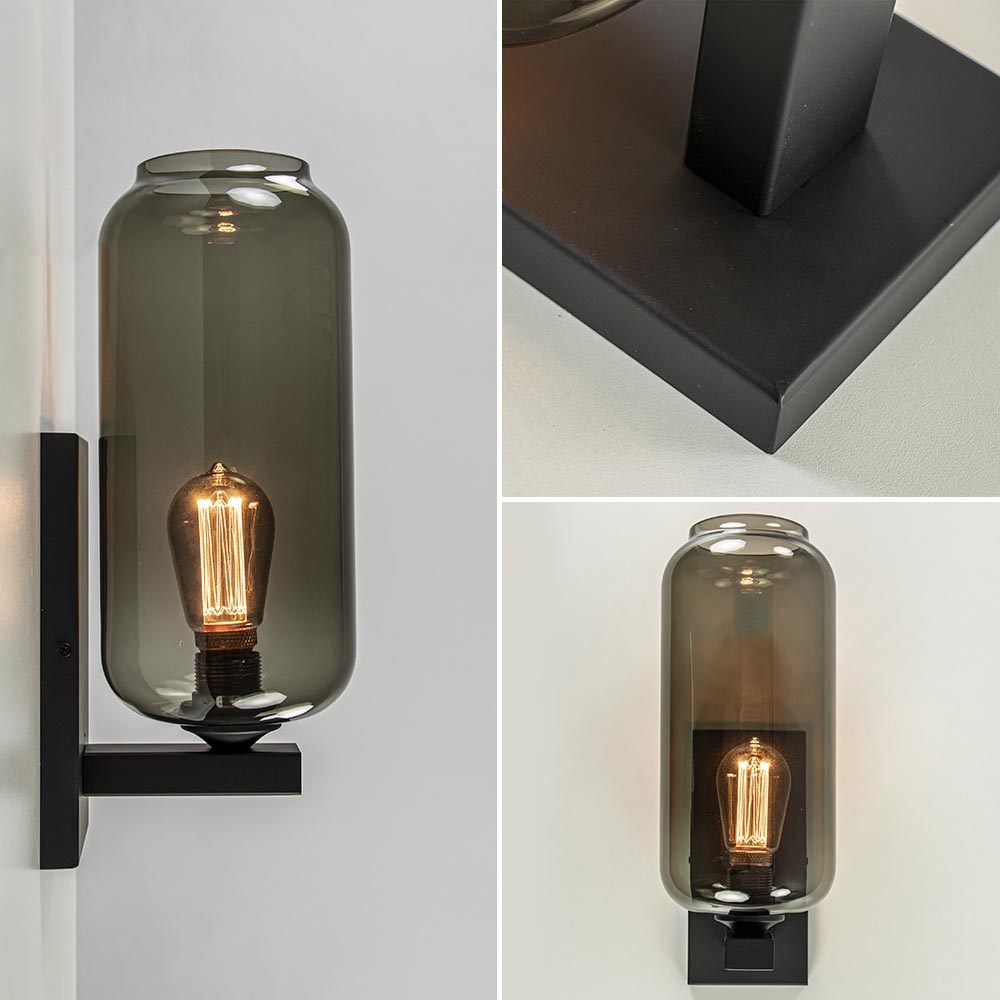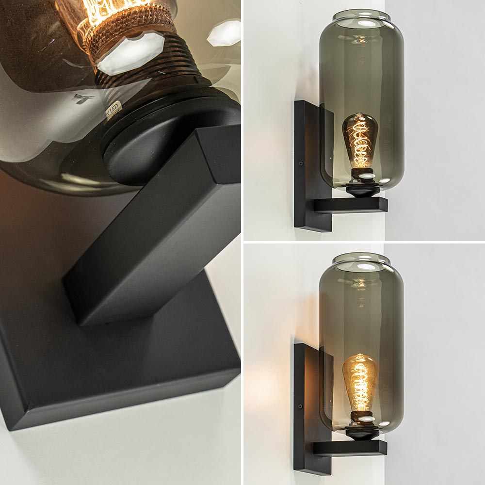 Een fijne wandlamp voor naast het bed, in de woonkamer of in de hal. De chique wandlamp is mooi toe te passen in diverse ruimtes. Het is wel van belang dat er een stroompunt aanwezig is. De wandlamp is namelijk niet voorzien van een snoer. De wandlamp heeft een rechthoekige wandplaat die is uitgevoerd in het mat zwart. Deze ondersteund een smoke glazen cilindervormige kap. Het donkere glas geeft de lamp een chique luxe uitstraling die mooi matcht in diverse woonstijlen. De wandlamp is dimbaar middels een externe dimmer (exclusief), en wordt geleverd zonder lichtbron (E27).