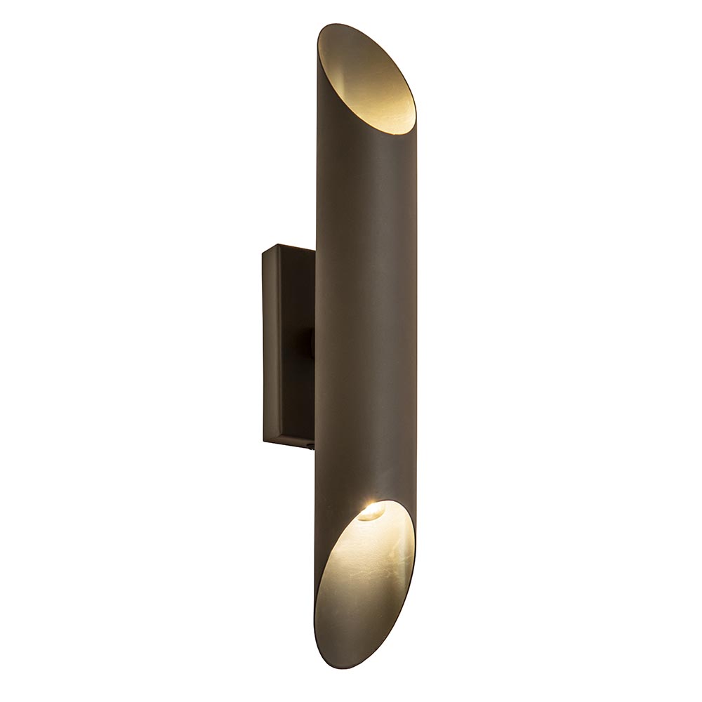– afm: 6x10x40 cm – cilinder: Ø6×40 cm – bevestiging: 6x2x12 cm – metaal – industrial dark – up+down – exclusief lichtbron (2x E14) – dimbaar (exclusief)