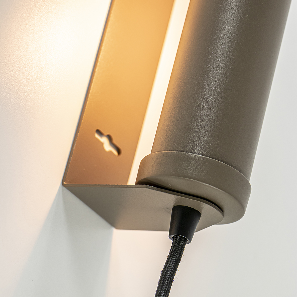 Breng wat extra sfeer in het interieur met deze verstelbare wandlamp. De wandlamp heeft een metalen armatuur dat is uitgevoerd in het mat bruin en is voorzien van een draaibare kap. Bepaal dus zelf naar welke kant u de lichtverspreiding wilt plaatsen en geniet van een fijne indirecte verlichting op de wand. De wandlamp kan verticaal en horiztontaal worden geplaatst en wordt aan 2 schroefjes opgehangen. De wandlamp is voorzien van een snoer met een lengte van 2 meter. Ideaal als extra sfeerlicht in de hal of woonkamer, of naast het bed als nachtlampje.