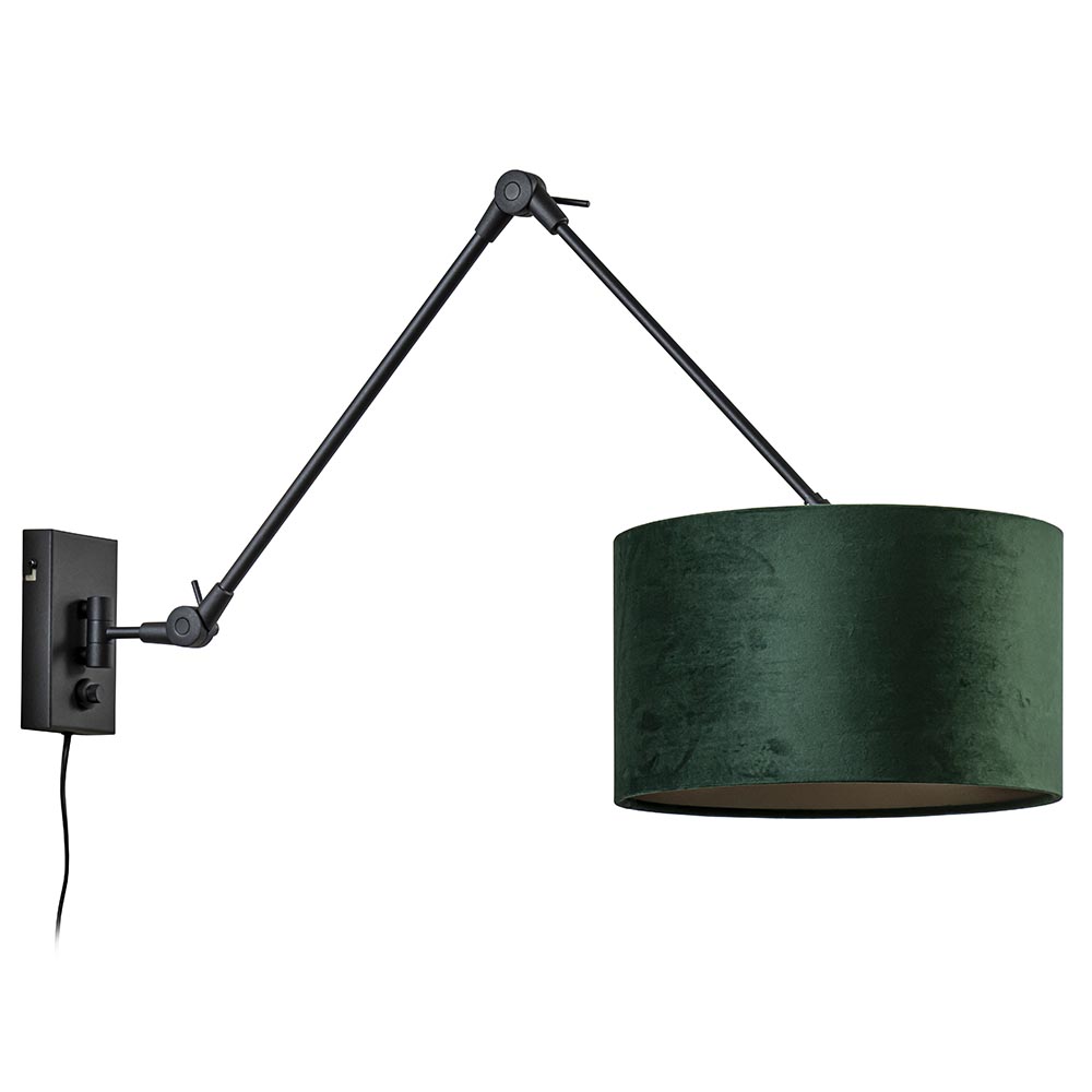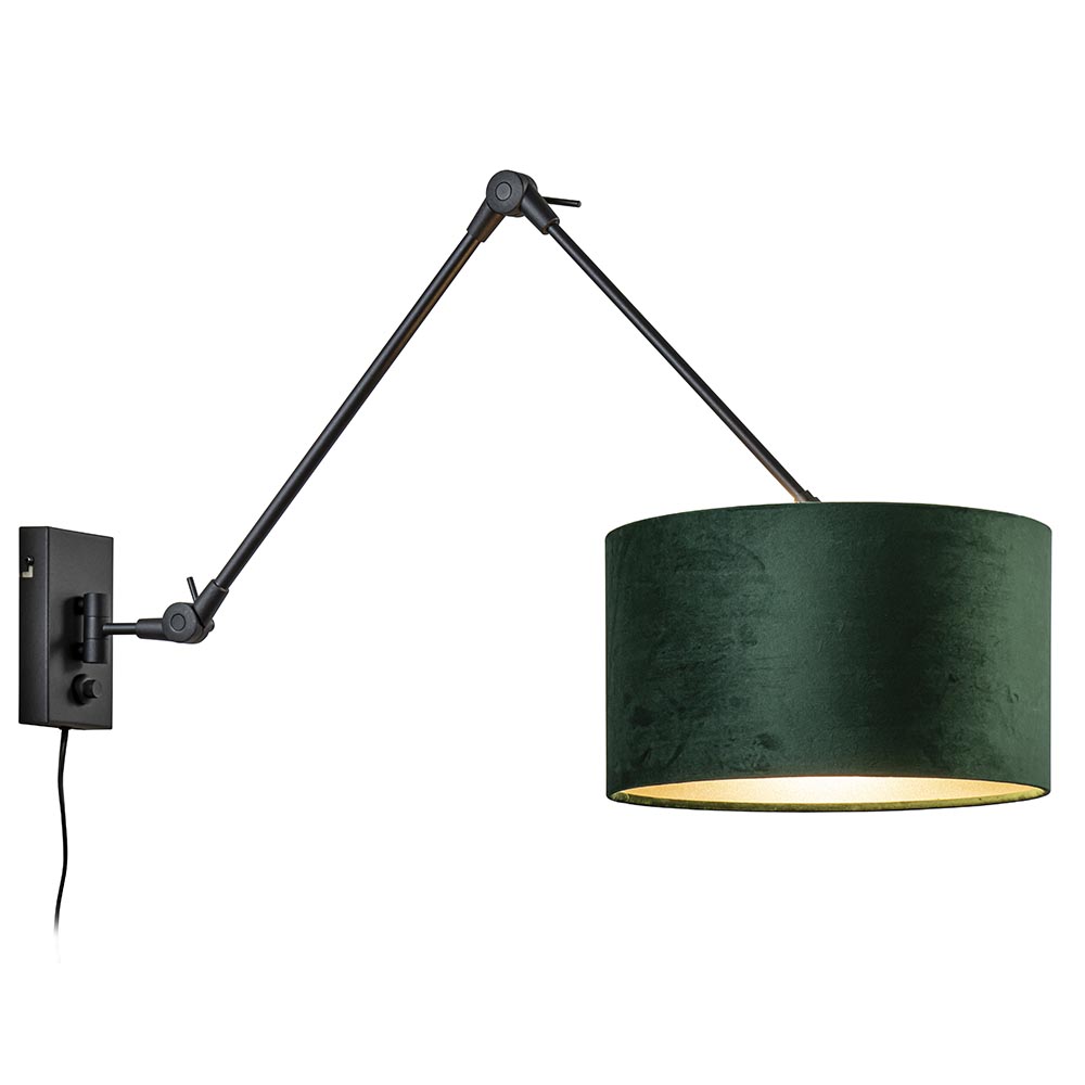 Een perfecte wandlamp voor naast de bank of het bed. Deze verstelbare wandlamp heeft een metalen armatuur dat is afgewerkt met een mat zwarte finish. Het zwart is mooi gecombineerd met een velourse groene kap wat de lamp prima geschikt maakt voor diverse woonstijlen. De wandlamp is op diverse plekken te verstellen. Zo kan de volledige arm draaien en is deze op twee plekken te kantelen. Verder kan de kap ook kantelen en draaien dankzij het kogelgewricht. Op de wandplaat is de aan/uit schakelaar geplaatst die ook als dimmer werkt. De rechthoekige bevestiging is voorzien van een zwart snoer met een lengte van 180 cm.