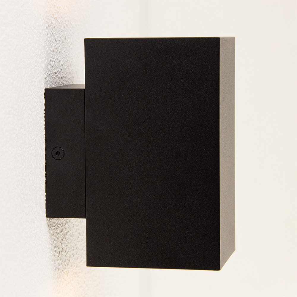 Dit kleine maar krachtige wandlampje zorgt voor de juiste verlichting en sfeer bij u in huis. De moderne metalen zwarte kap is voorzien van twee lichtbronnen die zowel naar beneden als naar boven verlichten en zo een mooie en sfeervole lichtverspreiding maken. Door het kleine formaat past de wandlamp overal in huis en kan deze mooi dienen als sfeerverlichting.