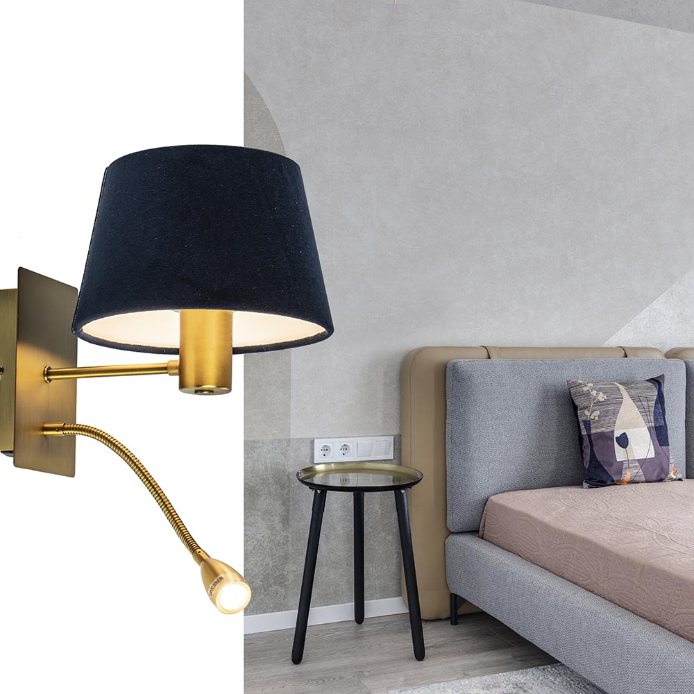 Homepagina / Lampen / Bedlampjes / Wandlamp Regina antiek brons met leesarm exclusief kap