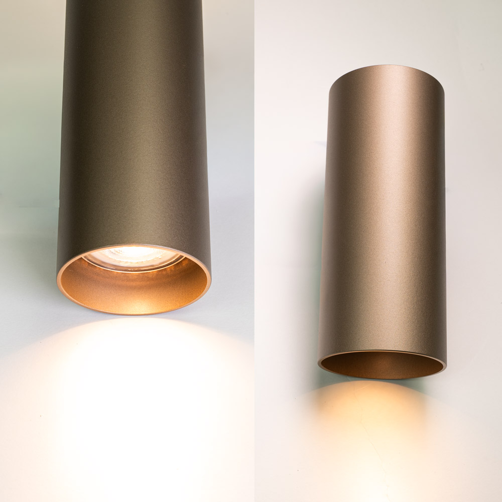 De Roulo wandlamp is de meest compacte uitvoering binnen deze selectie en perfect voor wie subtiele sfeer wil toevoegen zonder dat de lamp domineert. Het slanke cilindervormige ontwerp in champagnekleur zorgt voor een strak up & down lichteffect op de muur.