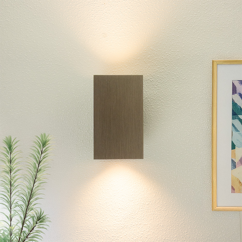 Dit kleine maar krachtige wandlampje Sandy zorgt voor de juiste verlichting en sfeer bij u in huis. De wandlamp is uitgevoerd in de nieuwste kleur brons. De kap is voorzien van twee lichtbronnen die zowel naar beneden als naar boven verlichten en zo een mooie en sfeervole lichtverspreiding maken. Door het kleine formaat past de wandlamp overal in huis en kan deze mooi dienen als sfeerverlichting.