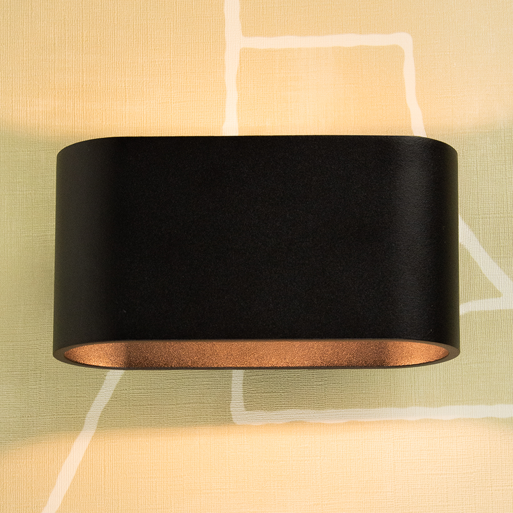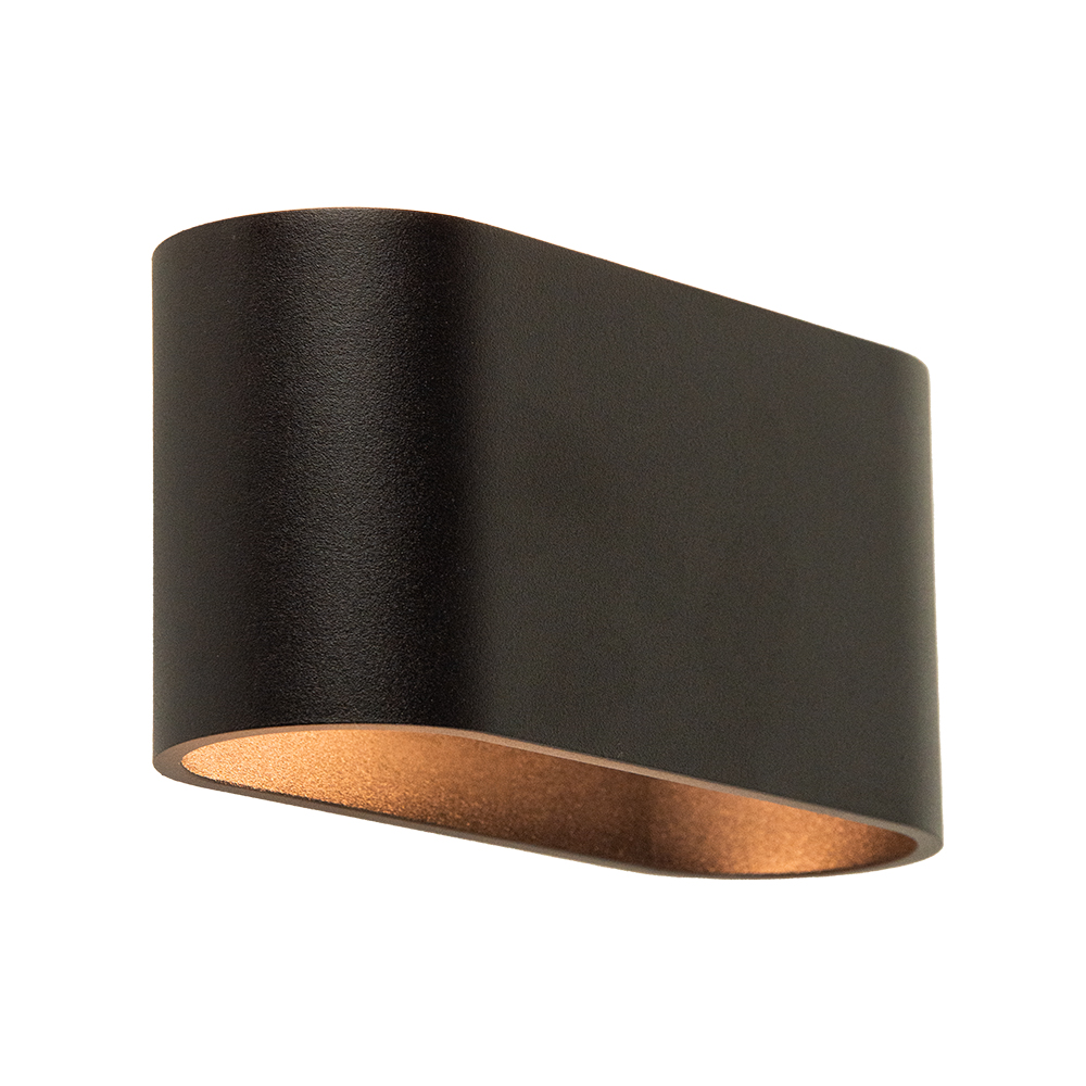 Deze stijlvolle wandlamp in het zwart is een perfecte toevoeging aan elk modern interieur. Het strakke, afgeronde ontwerp geeft een elegante en minimalistische uitstraling. De lamp verspreidt het licht zowel naar boven als naar beneden, wat zorgt voor een sfeervolle verlichting op de muur.