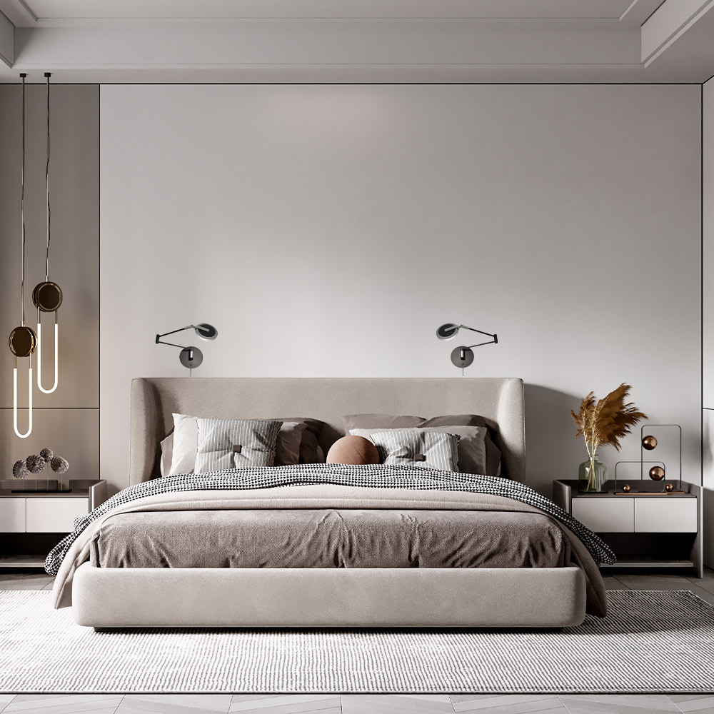 Met een totale armlengte van 44 cm (tweedelig) is de lamp eenvoudig richtbaar. Zo bepaal je zelf waar het licht valt, of je nu leest, werkt of ontspant. Dankzij de compacte wandplaat past deze lamp moeiteloos in kleinere ruimtes zonder in te boeten op stijl of comfort.