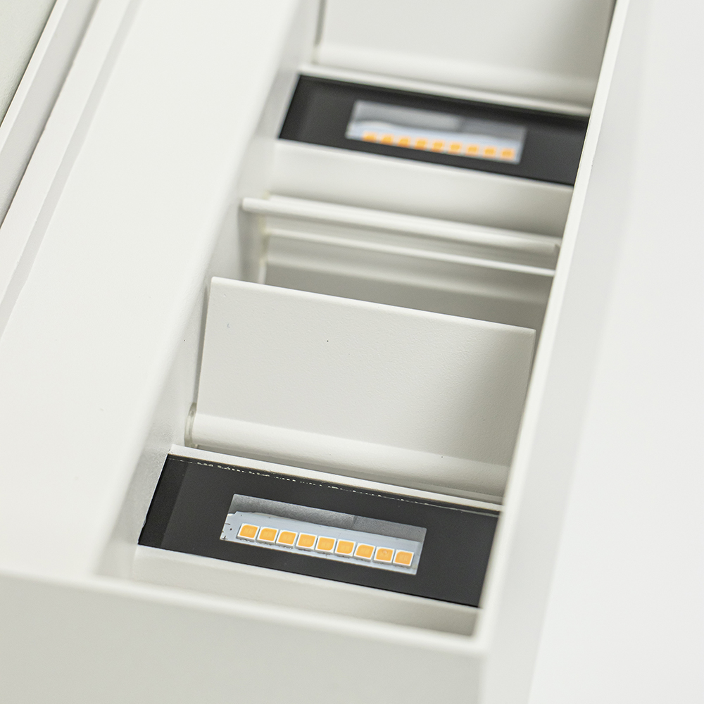 – afm: 10x20x10 cm – bevestiging: 18×6,5 cm – aluminium, wit – inclusief LED – 2200 lumen – 2700 Kelvin – IP54 goedgekeurd – dimbaar (exclusief)