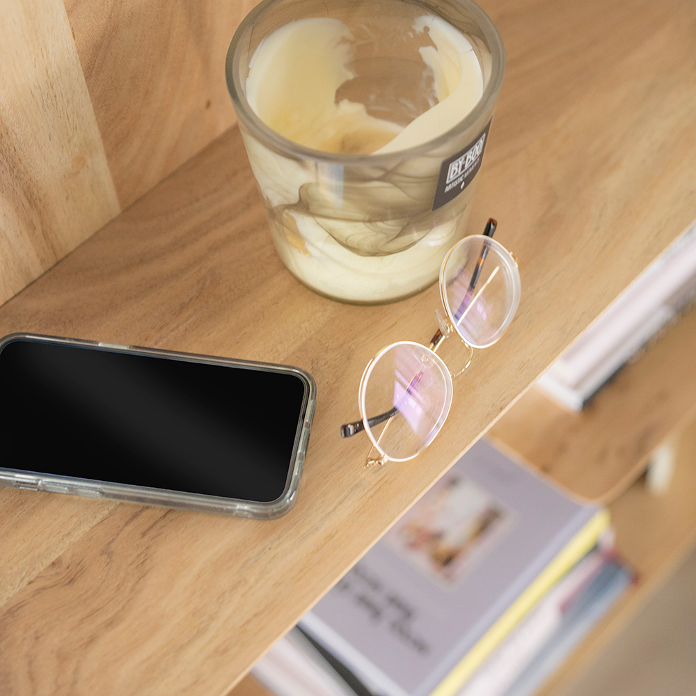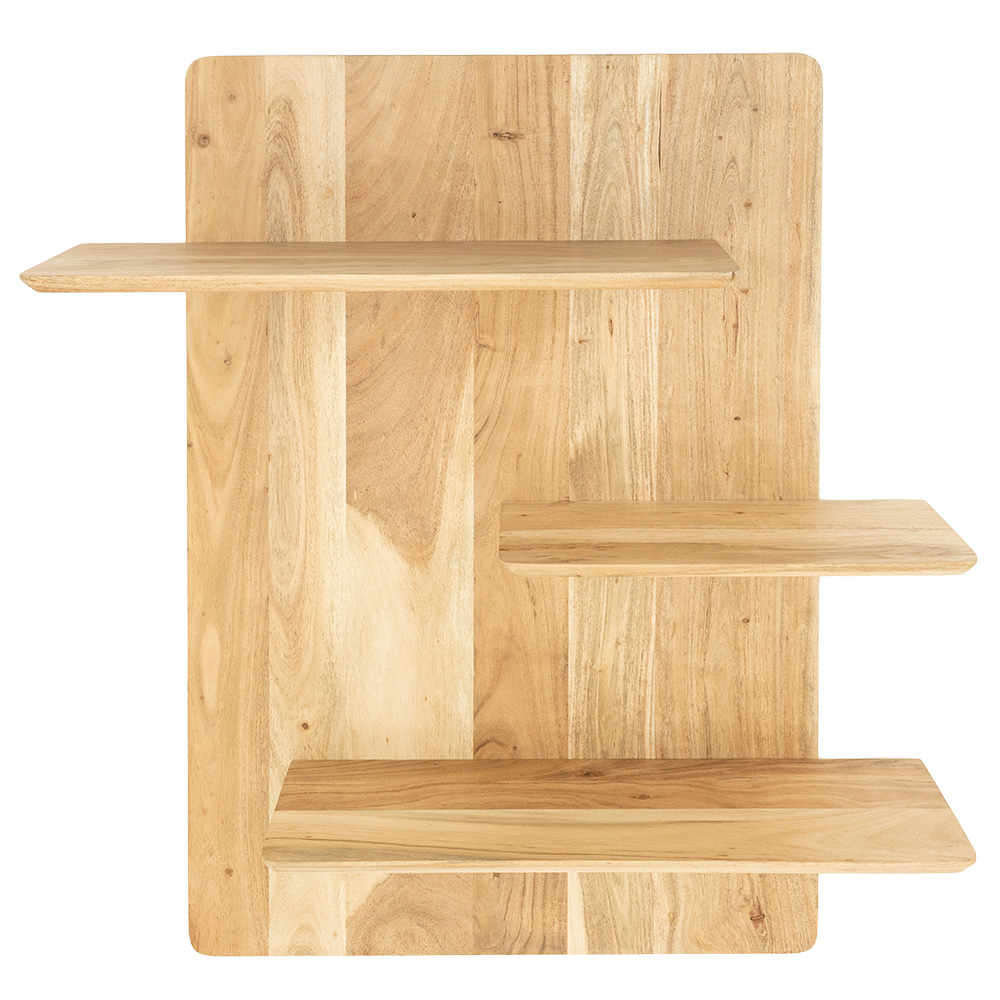 Het “Seco” wandrek in naturel acaciahout brengt een warme, organische touch aan je muur dankzij de drie speels verschoven plankjes en de zachte houttinten.