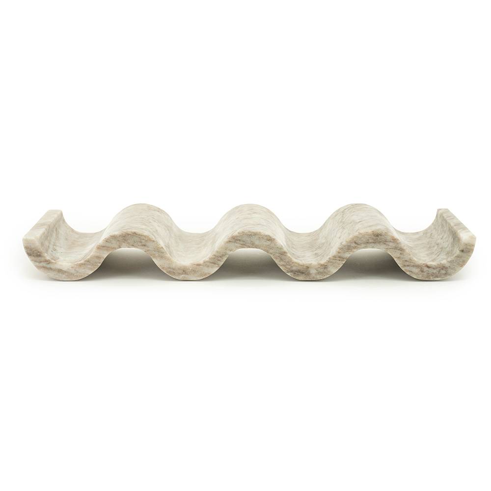 Korte omschrijving Een elegant en sculpturaal wijnrek van marmer met golvend design, perfect voor het stijlvol presenteren van je favoriete flessen.