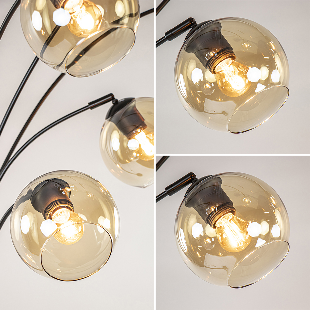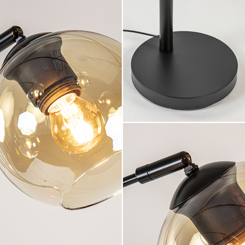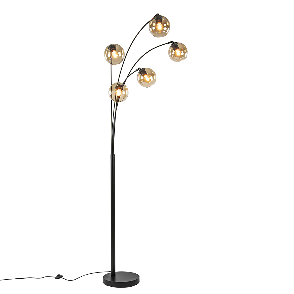 Moderne Vloerlamp – Mat Zwart – 5-lichts – Amber Glas