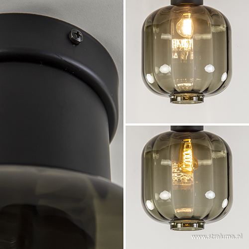 Net even wat meer luxe in de hal, keuken of slaapkamer? Dat kan met deze mooie plafondlamp met zwart glas. De glazen kap is vervaardigd in Italië waardoor deze van hoge kwaliteit is. Het zwarte glas geeft de lamp een luxe uitstraling en zorgt tevens voor een sfeervolle verlichting. De glazen kap loopt over in de mat zwart metalen bevestiging die net zo breed is als de opening van de glazen kap. Deze luxe glazen plafondlamp combineert mooi in een moderne of strak klassieke woning.