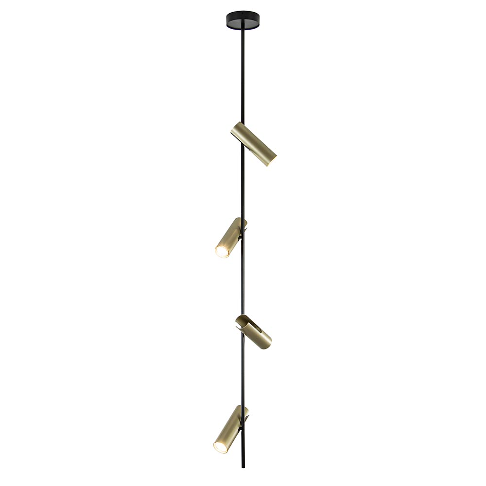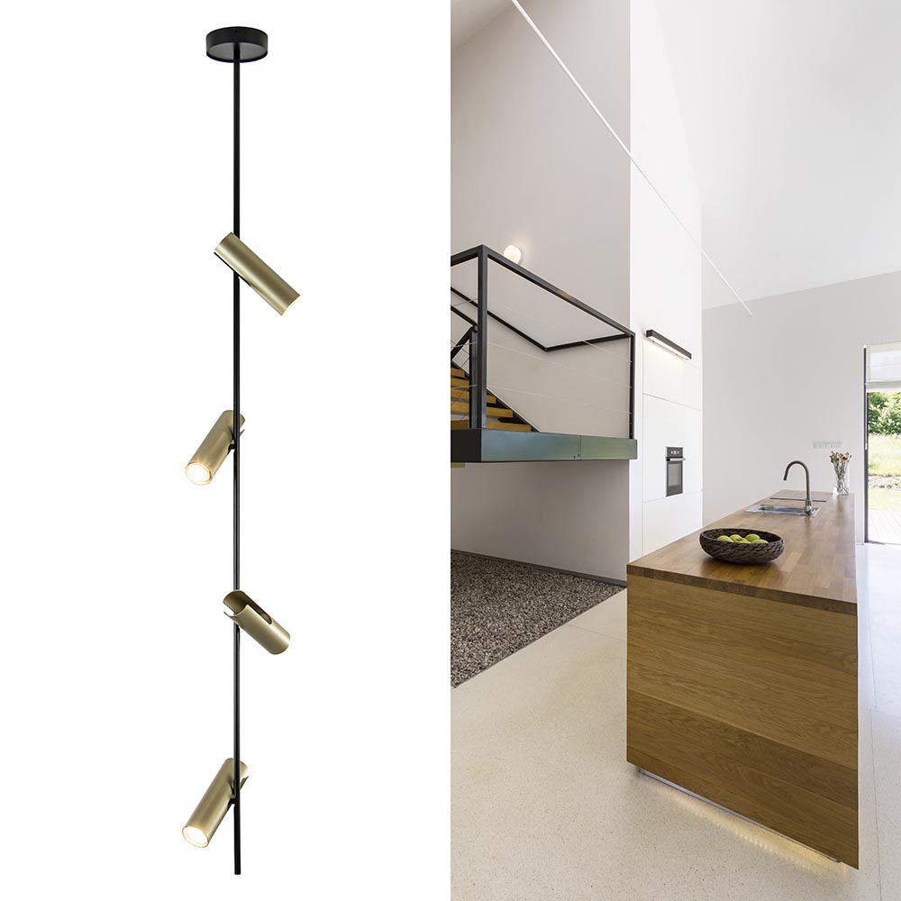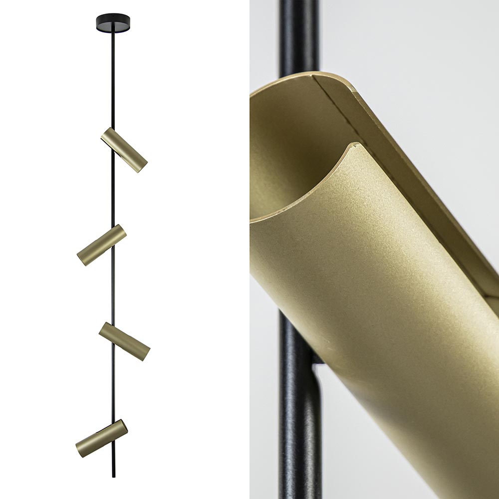 – hoogte: 178 cm – spots: Ø6×20 cm – bevestiging: Ø13×3,5 cm – metaal, mat zwart/goud – verstelbare spots – kantelbaar, draaibaar – exclusief lichtbron (4x GU10) – dimbaar (exclusief)