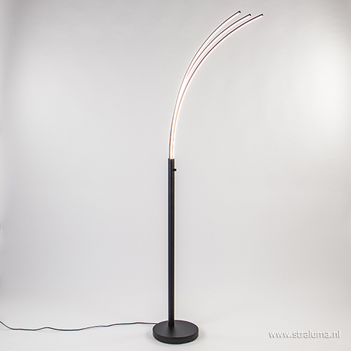 Deze moderne vloerlamp is weer eens iets heel anders. Het strakke design van de lamp geeft een design karakter aan het interieur. De drie LED strips zorgen voor een hoop licht, maar zijn gemakkelijk te dimmen met de pushdimmer op de stang. Deze staande lamp is uitgevoerd in mat zwart om het moderne gevoel extra te versterken. De LED vloerlamp wordt geleverd inclusief transparant snoer en door zijn LED verlichting is de lamp energiezuinig.