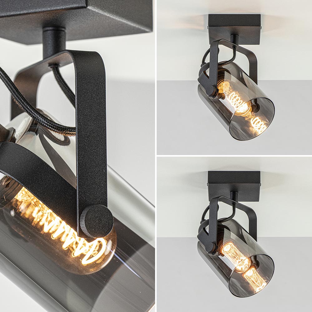 Industrieel met een chique luxe twist. Deze stoere plafondlamp is in diverse woonstijlen te combineren en toe te passen als plafond en wandlamp. De plafondlamp is gemaakt van metaal en afgewerkt met een mat zwarte finish. Het spiegelende titanium glas geeft de lamp een dubbele look, omdat deze donker transparant kleurt wanneer de lamp wordt ingeschakeld. De kap is te verstellen door deze te draaien en/of te kantelen. De smoke plafond/wandlamp is dimbaar middels een externe dimmer en wordt geleverd zonder lichtbron (E27).