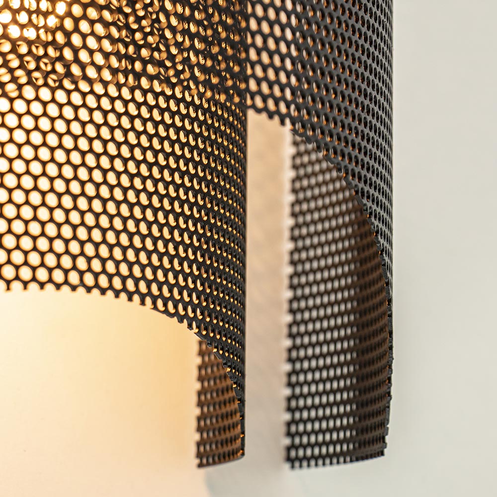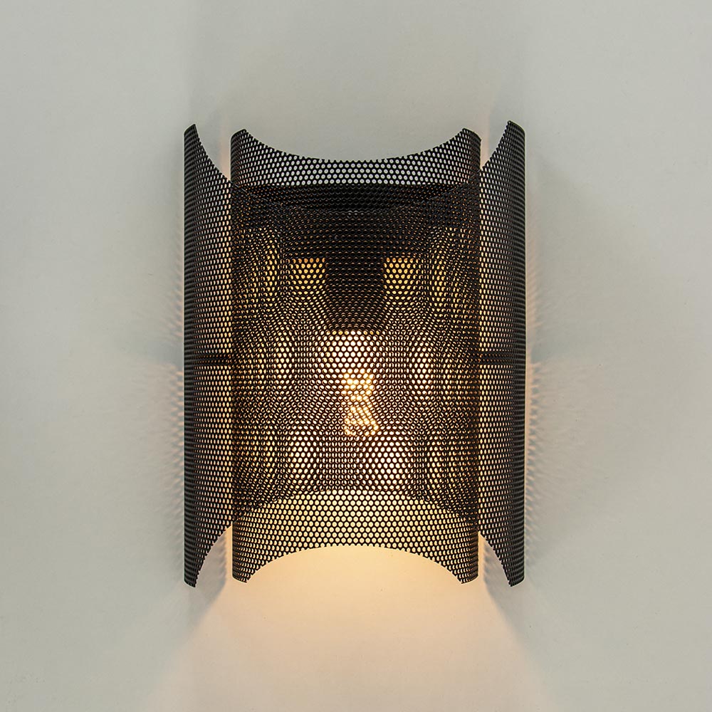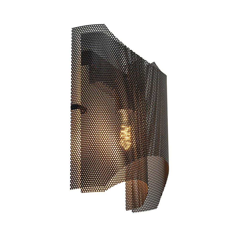 Een fijne wandlamp voor in een hal, slaapkamer of woonkamer. De wandlamp is volledig gemaakt van metaal en uitgevoerd in het zwart. Door het metaalgaas laat de wandlamp genoeg licht door zodat de ruimte prima verlicht wordt. De gaaskap bestaat uit 2 lagen en wordt gemakkelijk gemonteerd door deze op de wandbevestiging te schuiven. De zwarte wandlamp is niet voorzien van een snoer en wordt geleverd exclusief lichtbron. Een mooie toevoeging voor een industrieel of Scandinavisch interieur.